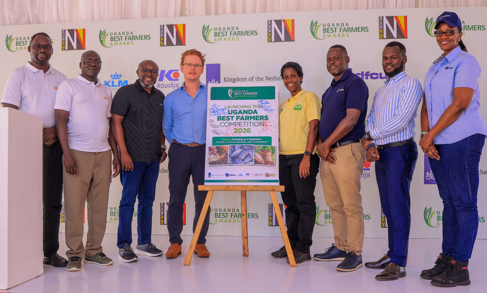 ICEA LION CEO Ambrose Kibuuka (GreySuit) holds the Dummy Cheque Presenting the Gold Sponsorship by the insurance grants for the…